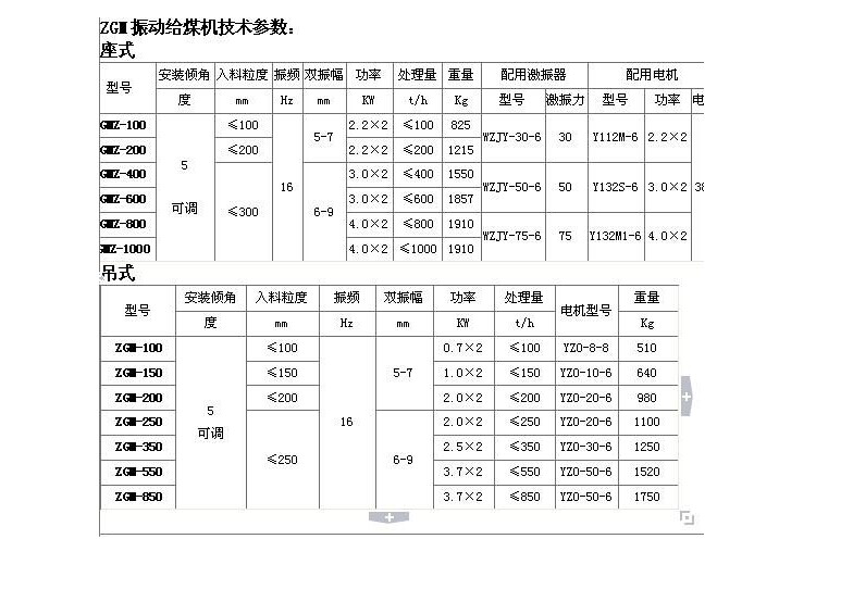 K型往复式给料机(往复式给煤机)技术参数表: